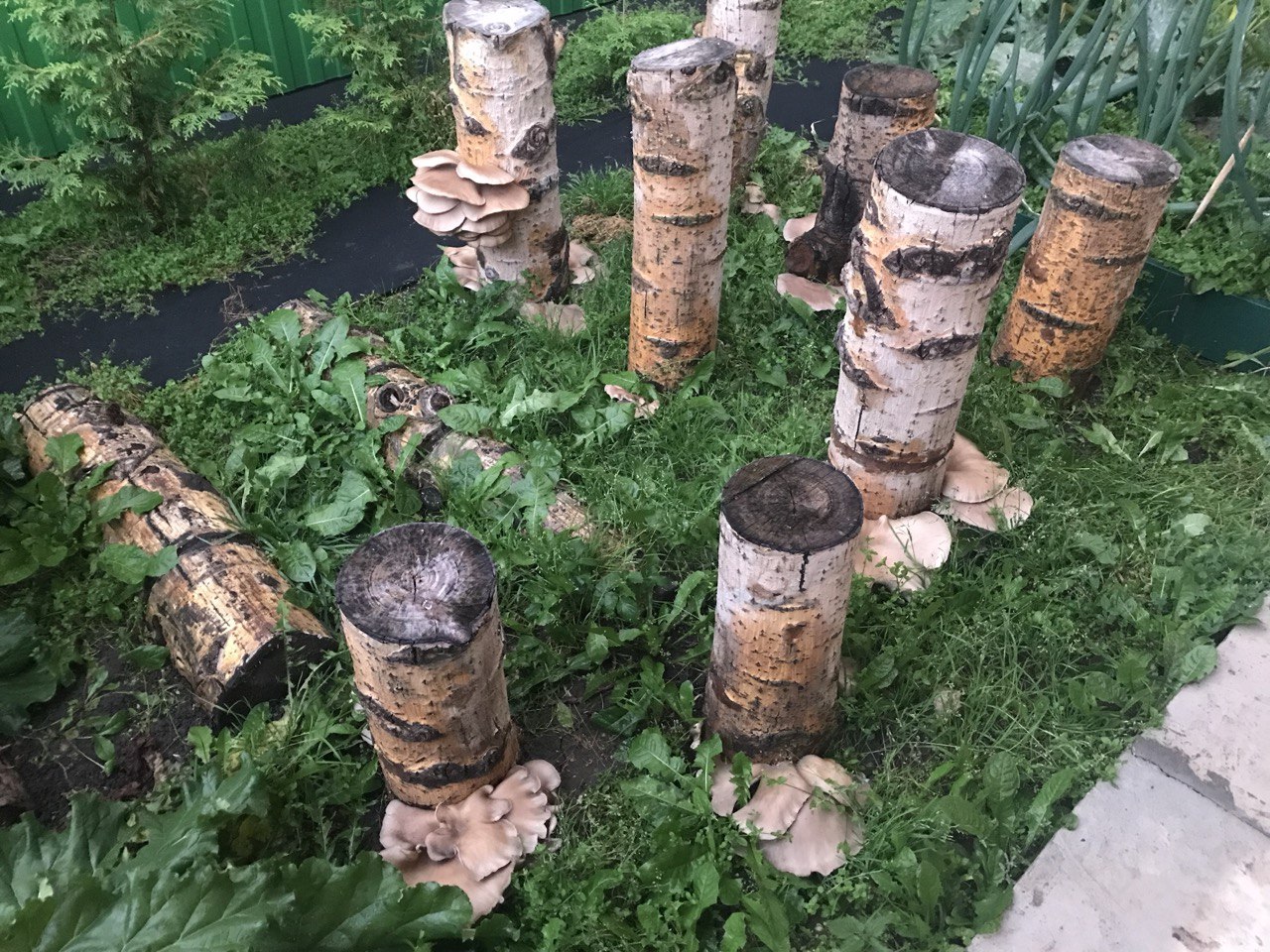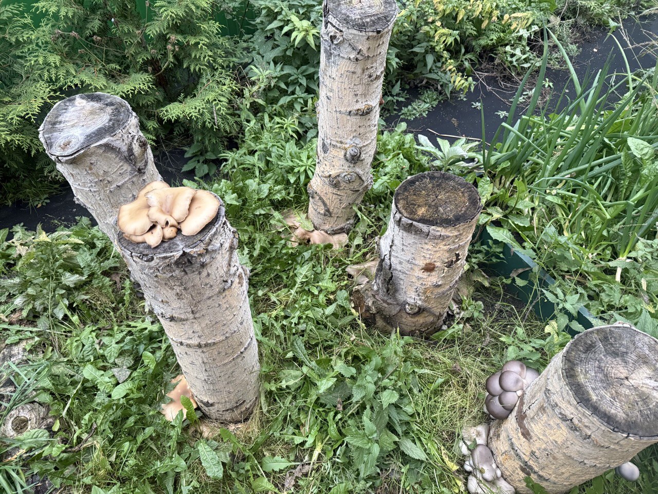 Идея вырастить вешенку на пнях появилась у меня не по учебнику и не по плану. Просто за домом всегда тень. Сыровато, прохладно, солнце туда почти не заглядывает. А после спила старых тополей остались крепкие, тяжёлые пни. Тогда я впервые задумалась, а что если попробовать вырастить грибы прямо на них?